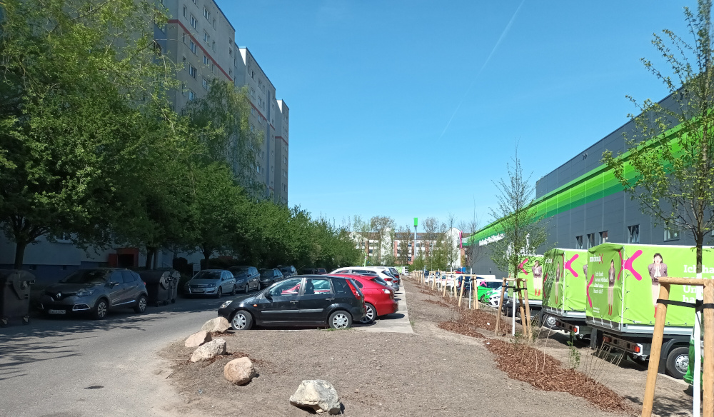 Die Parkplatzsituation im gesamten Wohngebiet ist äußerst schwierig. Im vergangenen Jahr hat der Kaufhallen-Betreiber diese Situation noch verschärft. Anwohnende können die dortigen Parkplätze nicht mehr zeitlich unbegrenzt nutzen. Im Beschluss der BVV wird das Bezirksamt beauftragt, sich gegenüber dem neuen Möbelmarkt dafür einzusetzen, dass Anwohnerinnen und Anwohner nach Ladenschluss die Parkplätze des Marktes über Nacht nutzen können.